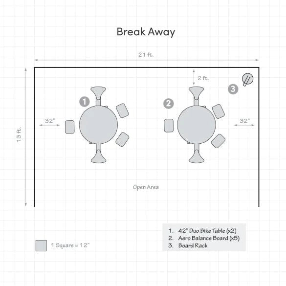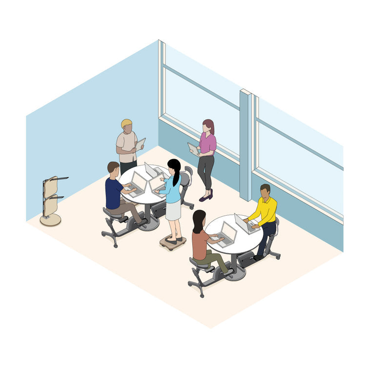 Last minute meeting pop-up on the calendar? Break Away with the perfect space. We designed this room with quick and collaborative meetings in mind while still being able to achieve the daily movement goal. By adding movement into the workday, creativity and productivity will come naturally.