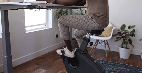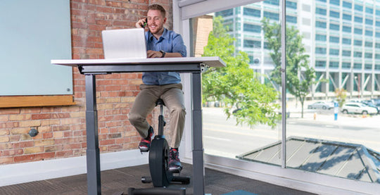 The Under Desk Bike fits handily under any standing desk, offering an easy solution for employees still wishing to stay active. Its sturdy construction supports up to 400 lbs, while its rear-mounted transport wheels make moving it a breeze. We designed the Under Desk Bike to complement the demands of a modern work environment.