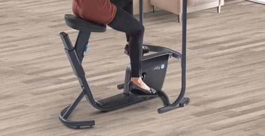 If you're looking for an exercise bike for your office desk, the Unity Bike Desk seamlessly combines the two parts (bike and desk) into a machine that increases productivity. With no power required, the Unity Bike Desk won't increase your overhead cost. Instead, it will increase your employee's motivation, mental, and physical health. The Unity's non-adjustable magnetic resistance is smooth and silent, allowing for pedaling forwards, backwards, or just fidgeting back and forth.